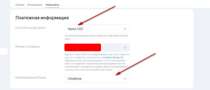 При подключении Системы быстрых платежей вознаграждение может приходить в срок до трёх дней быстрее, чем при использовании других способов. Процесс выплат остаётся таким же, как и раньше: вы получите вознаграждение в течение 20 рабочих дней следующего месяца при условии, что преодолели минимальный порог. Настроить выплаты Обратите внимание Выплата через СБП в настоящий момент доступна только на один из телефонов, сохранённых в профиле Яндекс ID. Выбирая номер, вы подтверждаете, что он принадлежит вам, и соглашаетесь на выплату вознаграждения на счёт, привязанный к указанному номеру. Мы не сможем вернуть платёж, выполненный на ошибочный номер.В рамках одного периода можно вывести не больше 1 млн рублей.