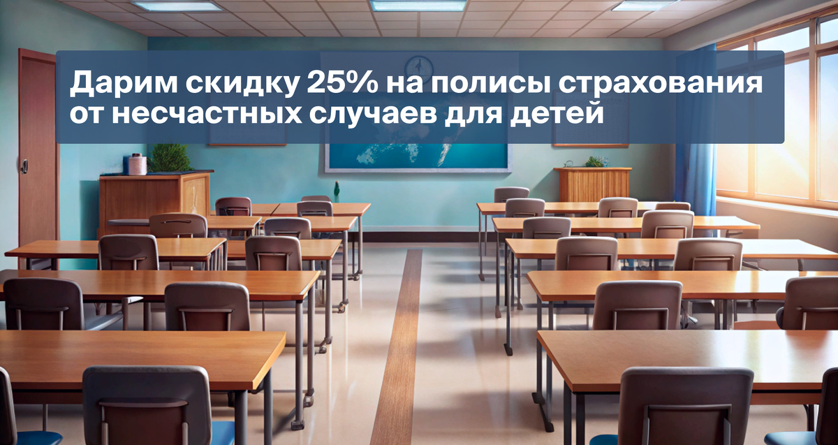 Скоро 1 сентября — начало нового учебного года. К этому дню мы подготовили подарок для школьников и их родителей — скидку 25% на детские страховые полисы от несчастного случая.