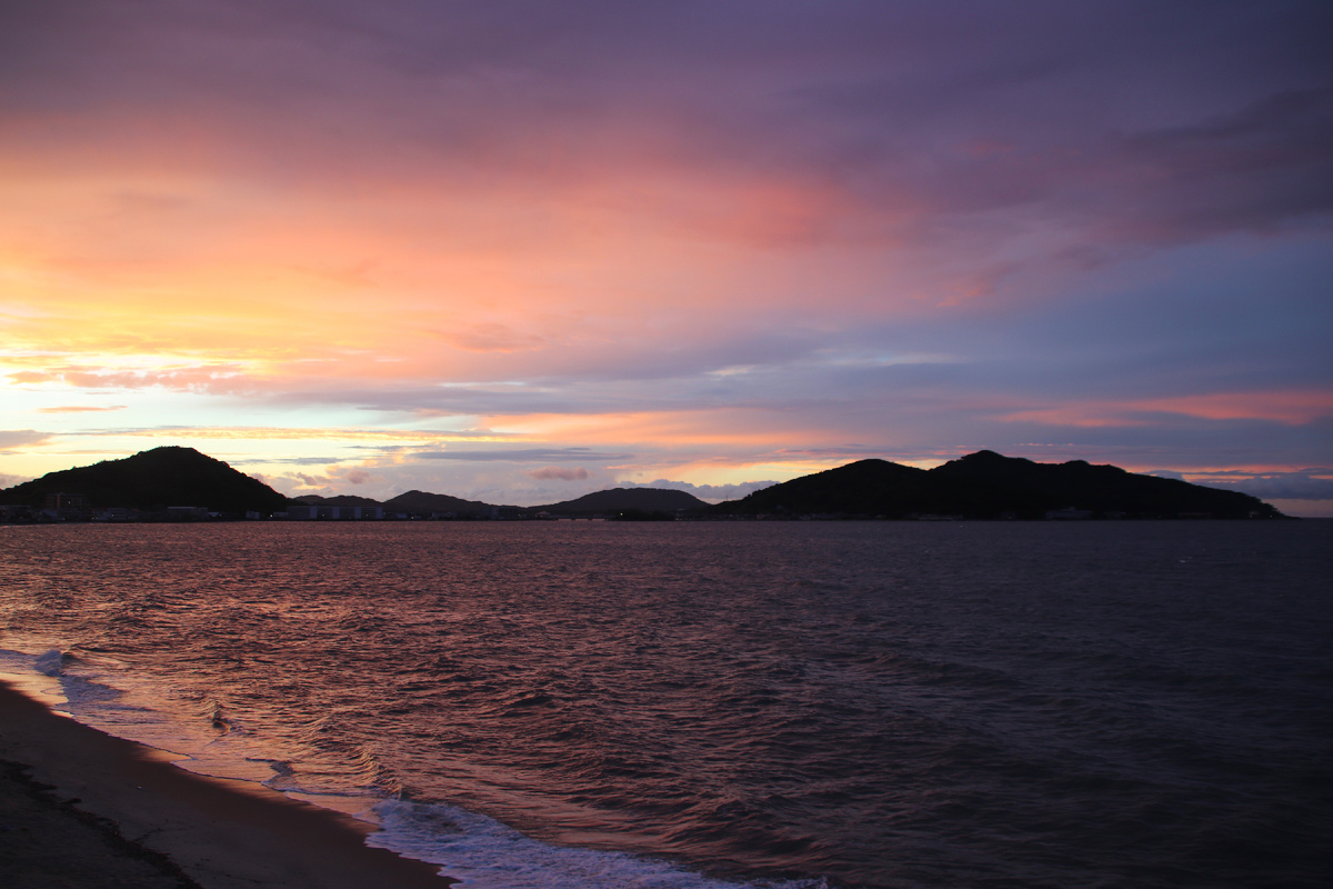 Она потрясающе красиво смотрелась на фоне розового облака, подкрашенного закатными лучами солнца. Народу на пляже собралось много, все фотографировали чудесное оптическое явление.