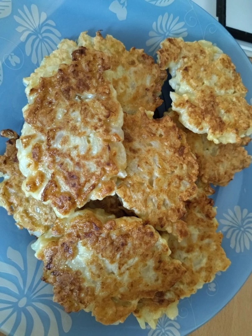 400 г капусты 2 яйца 80г муки Соль, перец Растительное масло для жарки Капусту нашинковать, опустить в кипящую подсоленную воду и варить минут 10. Затем откинуть на дуршлаг и придавить немного, чтобы вся вода ушла. В мисочке взбиваем яйца с солью и перцем, добавляем туда муку, все хорошо перемешиваем. Выкладываем к этой смеси остывшую капусту, все перемешиваем. Разогреваем сковороду с растительным маслом, ложкой выкладываем полученную смесь и жарим оладушки примерно 2 минутки, переворачиваем на другую сторону и доводим до готовности. Подаём с майонезом или сметаной.