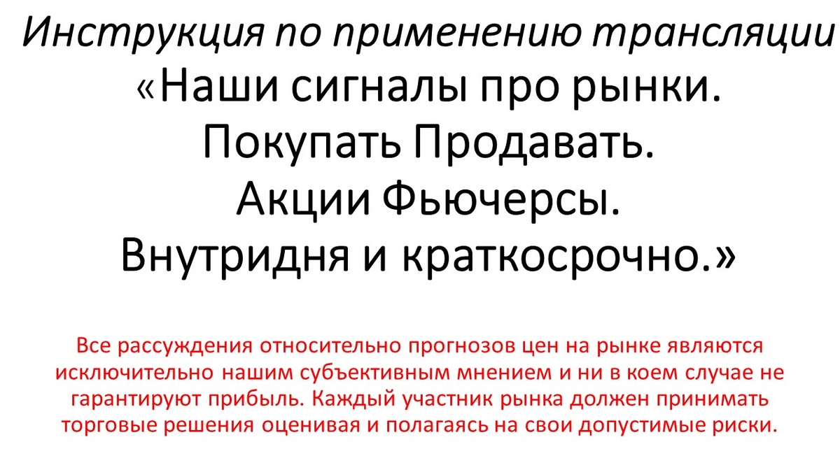 Инструкция по трансляции - Наши сигналы про рынки Покупать Продавать Акции Фьючерсы. Внутридня и краткосрочно