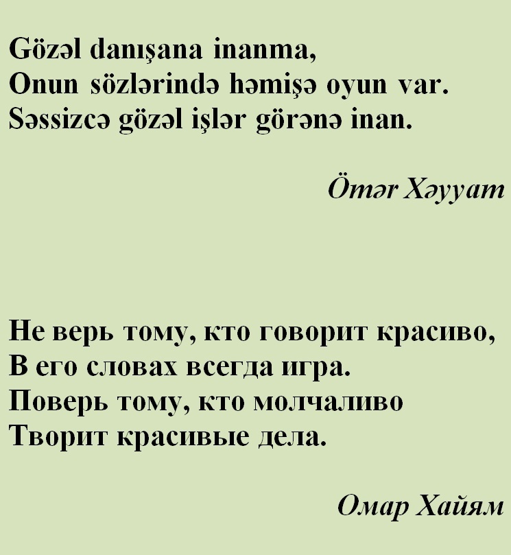 Стихи на азербайджанском языке. Омар Хайям / Azərbaycan dilində şeirlər. Ömər Xəyyam