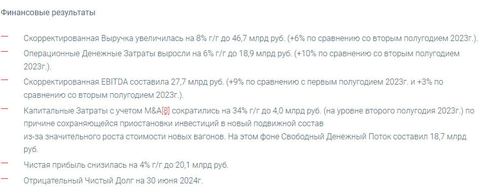 -Чистая прибыль: 20,1 млрд рублей (-4% г/г); Так же, компания имеет отрицательный денежный долг на 30 июня 2024 года. -Грузооборот и Погрузка Группы снизились на 11% и на 9% г/г;