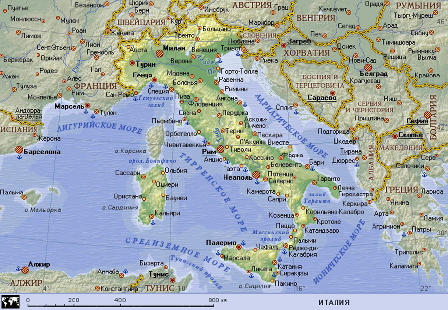 На территории Италии расположены два мини-государства - Сан-Марино и Ватикан.