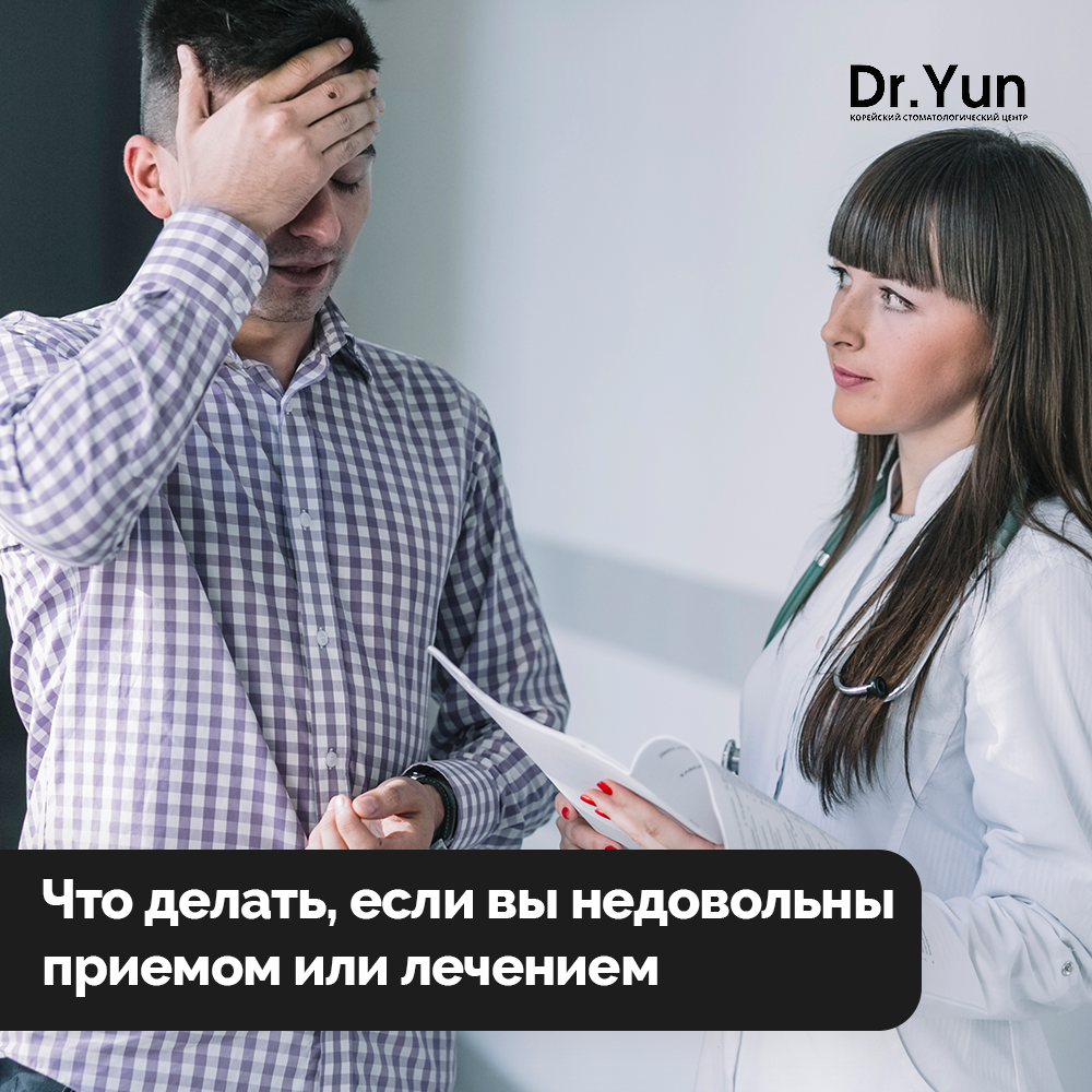 Да, бывают и такие случаи - после приема врача Вы чувствуете разочарование, недовольство, или не согласны с предложенными методами лечения. 1. Обозначить проблему: постарайтесь четко сформулировать, что именно вас не устроило — отношение врача, качество лечения, стоимость услуг и т.д. 2. Записать все детали: зафиксируйте важные моменты — что и когда было сделано, какие рекомендации давались. 3. Обсудить с врачом: еще раз обсудите возникшие вопросы со стоматологом и объясните свои переживания. Возможно, врач сможет предложить решение проблемы или разъяснить ситуацию. 4. Обратиться в клинику: если разговор с врачом не помог, стоит подключить руководство стоматологической клиники. Опишите свою ситуацию и попросите о помощи. Если вы лечились в другой клинике и сомневаетесь в результатах, то за вторым мнением вы всегда можете обратиться в клинику Dr.Yun 🦷 Захватите все выданные документы (снимки, план осмотра, акты выполненных работ и т.д.) и приходите к нам на осмотр. Наш доктор проведет