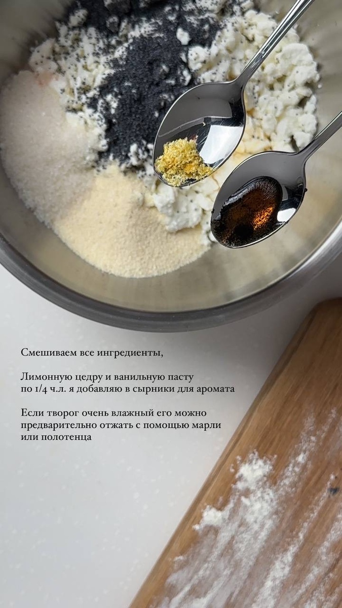 ✅Творог 300 р. ✅1 желток (от крупного яйца, категории СО или 1) ✅30 гр. Манной крупы ✅30 гр. сахара ✅10 гр. = 1 ст.л. без горки мака(взвесить) ✅1/4 ч.л. Соли ✳️По желанию: 1/4 ч.л. Ванильной пасты 1/4 ч.л. Лимонной цедры ✅Мука, чтобы сформировать сырники ✳️Масло для жарки ( если нужно) 1. Все перемешиваем, пока тесто не станет липким, формируем сырники, жарим по 5 мин. с каждой стороны на небольшом/среднем огне( у меня сила нагрева обычно на 4-5 из 9 на электрической плите, сковороду предварительно разогреваю ) 2. Какие получатся сырники очень сильно зависит от качества творога: влажный он или сухой. Я подобрала себе тот, с которым все получается прекрасно без лишних манипуляций. 3. Если творог влажный рекомендую предварительно его отжать через марлю/неплотную ткань, иначе сырники могут развалиться при выпечке 4. Если тесто не становится липким через пару минут замешивания творог очень сухой, добавьте небольшую часть яичного белка. ПОПРОБУЙ!
