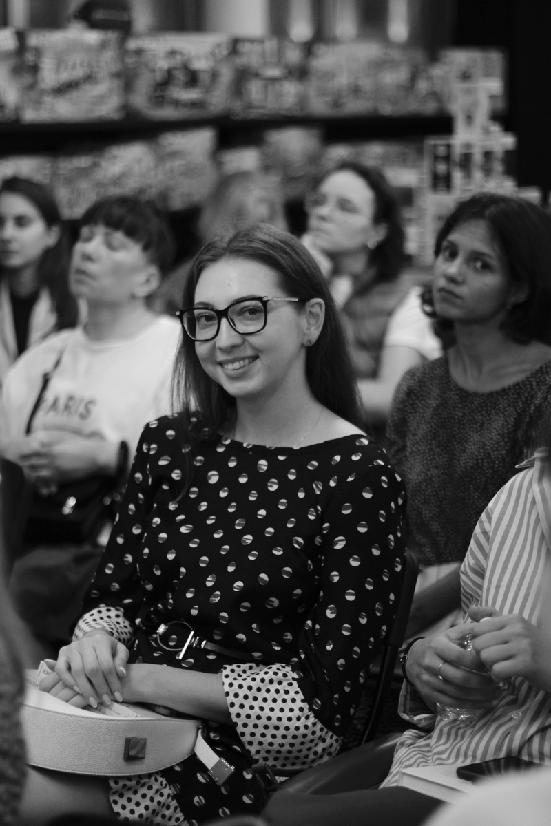 В среду вечером, 28.08 в Республике* на Тверской (м. Маяковская, ул. 1-я Тверская-Ямская, 10), прошла встреча с Нютой Федермессер, автором книги «Камера хранения». Посидели отлично: все места были заняты. Нюта — прекрасный оратор, замечательный, самоотверженный человек. Мы многое узнали: 1. Как создавалась книга «Камера хранения». 2. Какой любимый поэт у Нюты. 3. Как нужно и не нужно общаться с сотрудниками\коллегами. 4. И много чего ещё, в одном фотоотчёте не уместить.