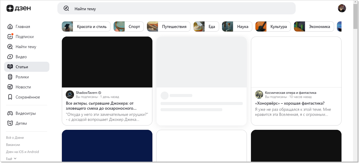 Сначала я подумала: может, все не так плохо? Но нет - это очень плохо и в очередной раз Дзен пробивает дно, делая работу ленты максимально бессмысленной и неудобной! Действительно что ли перед разработчиками стояла задача максимально распугать читателей, чтобы остались только самые стойкие и упертые полторы калеки? Пункт первый, который бесит - изуродованный поиск. Захожу я почитать статьи, хочу найти конкретно нужный мне канал - раньше это происходило через кнопку с лупой наверху - Поиск на Дзене. А теперь там что?! Найти тему! Зафигом мне темы, как канал или людей искать?! О-кей, предположим, я надумала искать тему. Уже при клике на строчку я попадаю вот на эту страницу: Это че за сюр?! Зачем мне машины? По какому принципу они здесь оказались? Это самая не интересная мне тема в принципе, почему я ее вижу? И где остальные? Если Дзен ввел темы - а мы видели уже, как феерично он их ввел на примере рубрики "путешествие", например, - ну уже пусть нам их покажет! Но - вы видите где-нибудь