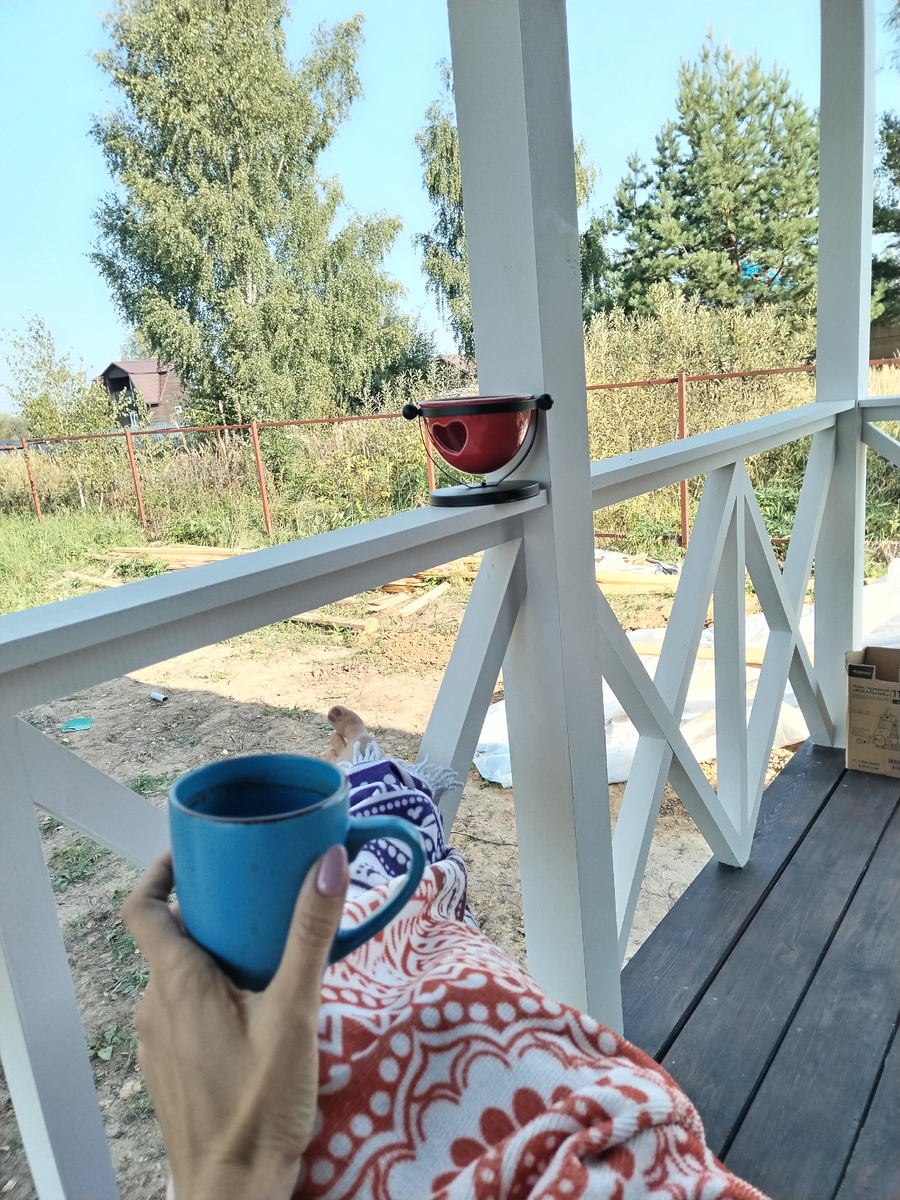 Утро. Я с чашкой кофе в средиземноморском стиле встречаю новый день на веранде своего дома. В первый раз... И думаю об идеальности. Сосед сказал вчера, что сосну у крыльца надо спилить, потому что она куцая. Фото сосны прилагаю. Однако он не знает, что эта сосна росла в чаще лесочка, который тут был. И когда я решала, что спилить и выкорчевать, а что оставить, именно она коснулась моей руки своей шершавой ветвью и молчаливо попросила оставить ее. Я оставила, и теперь мне нравится ее прозрачность. Не всем быть герцогинями, как Джорджиане: И берёзу мне эту тоже говорили спилить, мол, кривая: Теперь ее изогнутый ствол уходит прямо в августовскую синь... Шкафчик на кухонном гарнитуре плохо закрывается, а от пола задралась огромная щепка и чуть не занозила мне стопу. Но и это - не ужас-ужас, а детали нашего первого утра на даче. Человек часто мыслит какими-то умозрительностями, идеалами, симметриями и совершенствами. Природа работает совсем иначе. С кучей ошибок, вариантов, искривлений, по