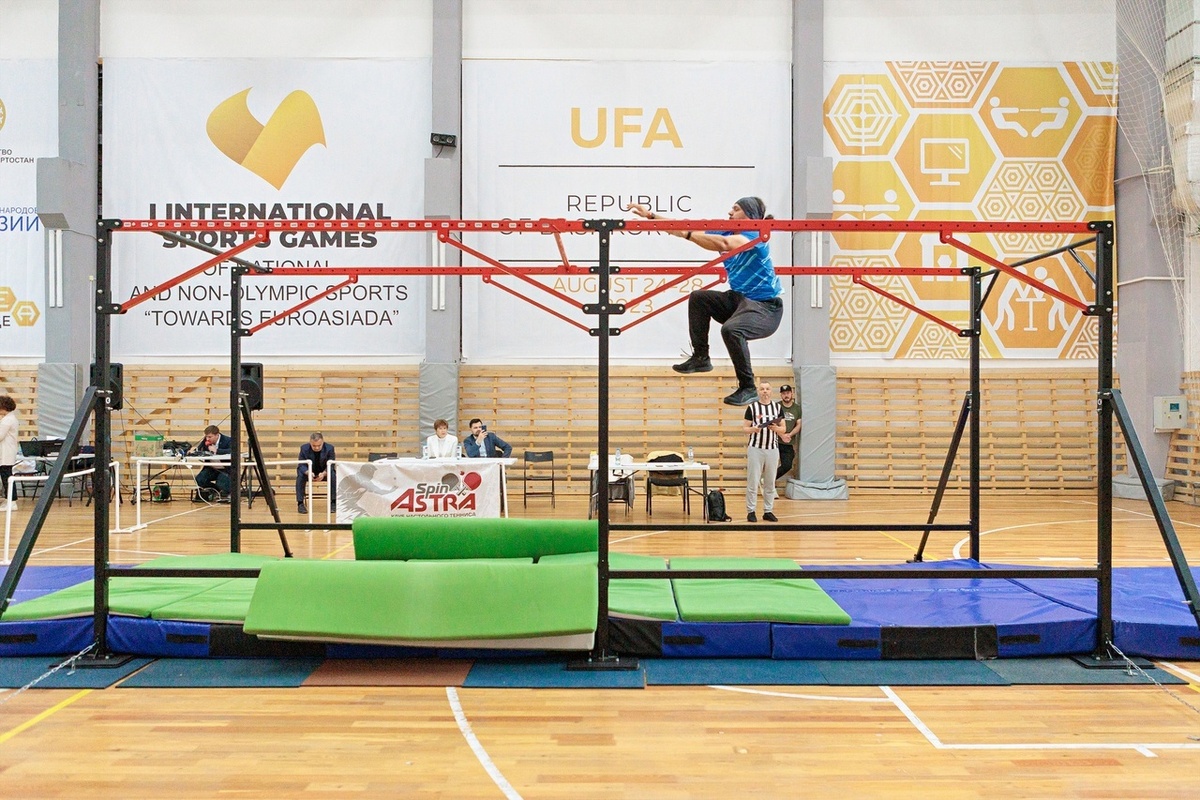 «Трасса – перелеты в длину» с номером-кодом спортивной дисциплины 1760061811Я (международное название дисциплины «Parkour- lache») – дисциплина "воздушно-силовой атлетики", в которой спортсмен должен совершать перелеты с турника на турник в длину. Победителем становится спортсмен, выполнивший перелет на самую длинную дистанцию.