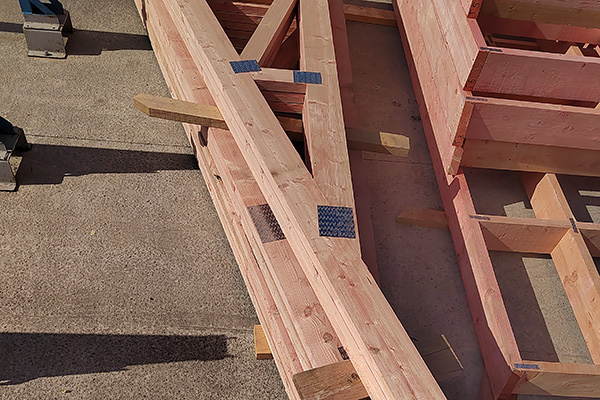 Стропильная ферма на МЗП — это конструкция, состоящая из деревянных балок, соединенных между собой с использованием металлических зубчатых пластин. Эти пластины прикрепляются к дереву под давлением, что создает прочное и надежное соединение, исключающее необходимость в дополнительных крепежных элементах, таких как болты или гвозди.