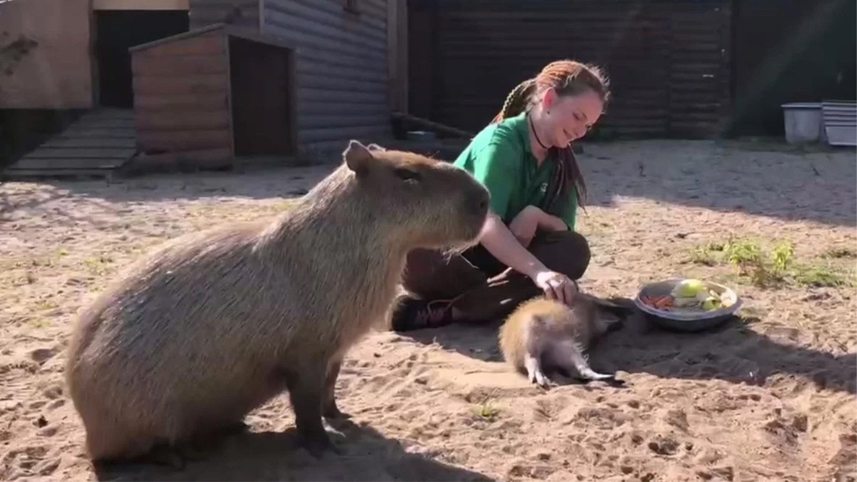 У капибар Кайсы и Ермака в начале июля родился детёныш. Сотрудники зоопарка наблюдали за ним, чтобы убедиться, что с ним всё в порядке. Сейчас, когда стало ясно, что он полностью здоров и у него прекрасный аппетит, его решили представить публике. Киперы рассказывают, что малыш больше времени проводит с папой, а к маме подходит, чтобы поесть. Молоко — важной частью его рациона до четырёхмесячного возраста. От папы сын перенял и большинство привычек. Например, малыш, как и его папа Ермак, чтобы добраться до еды, берет миску зубами и двигает к себе. Кайса так не делает, она просто встаёт и подходит к кормушке. А вот к людям малыш относится не так, как его папа. Ермак очень осторожный и почти никому не позволяет трогать себя. Сын же растет общительным и очень любит, когда киперы его чешут. «Сейчас семейство капибар живёт в летнем вольере рядом с жирафом. Успейте прийти понаблюдать за ними, пока на улице еще тепло», — отмечают в зоопарке. 25 сентября прошлого года у Кайсы и