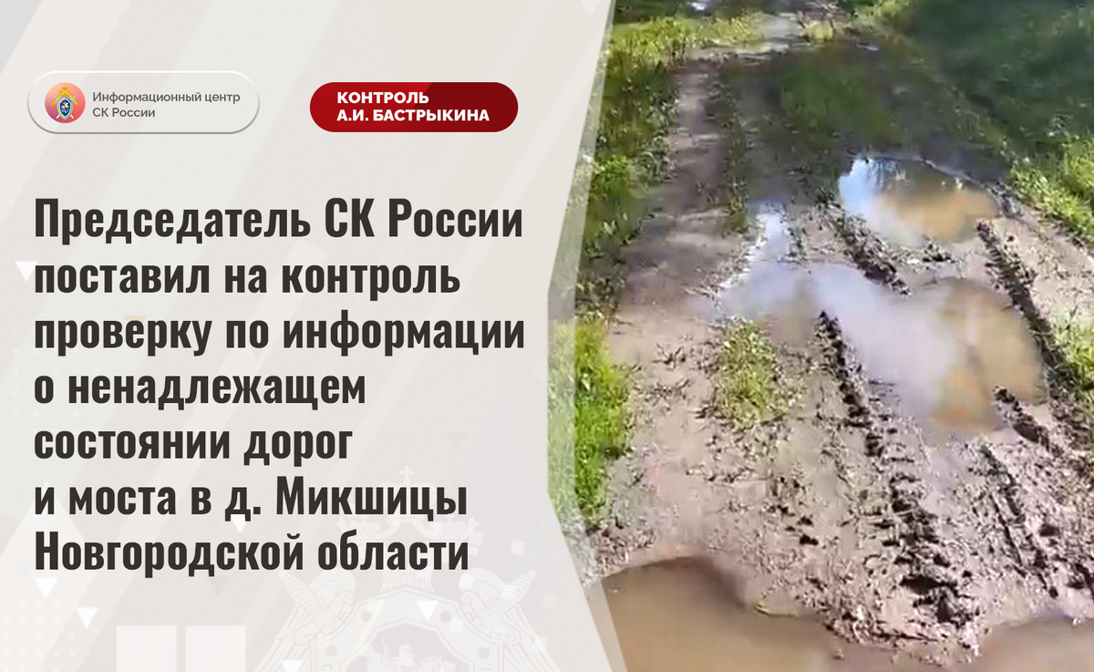 Председатель СК России поставил на контроль проверку по информации о ненадлежащем состоянии дорог и моста в д. Микшицы Новгородской области