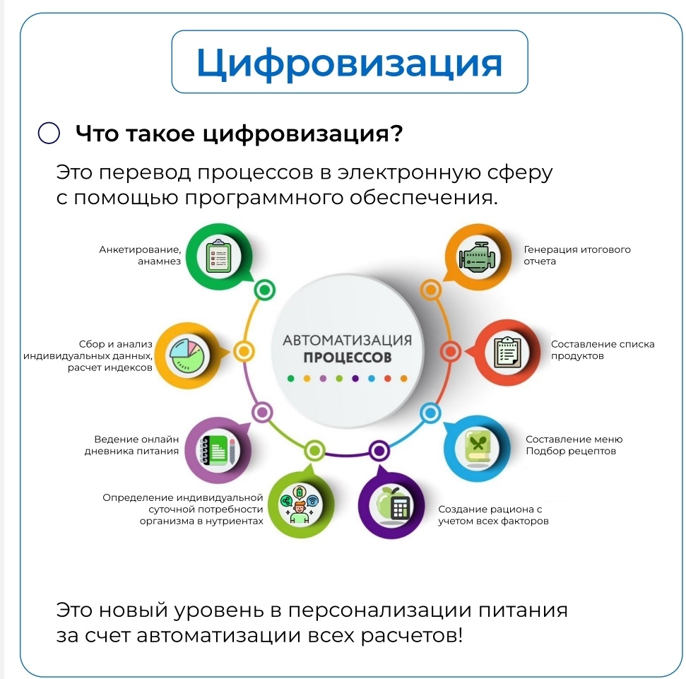 Устали от рутинных расчетов и бесконечных таблиц? Хотите больше времени уделять клиентам и их результатам? Тогда вам точно нужно узнать о новом it-решении от НИИ Анализа Питания – автоматизированном рабочем месте нутрициолога! Что такое АРМ нутрициолога? Это уникальный программный комплекс, который автоматизирует: ✅Анализ пищевых дневников: программа автоматически подсчитывает калории, белки, жиры, углеводы, витамины и минералы в рационе клиента. ✅Составление индивидуальных меню: на основе анализа потребностей и предпочтений клиента программа предлагает оптимальное меню, учитывая его образ жизни и цели. ✅Мониторинг прогресса: программа позволяет отслеживать изменения в составе тела, динамику веса и улучшение показателей здоровья клиента. ✅Генерация отчетов: программа автоматически формирует подробные отчеты о питании клиента, которые можно использовать для презентации результатов и обучения. Преимущества АРМ нутрициолога: Свобода от рутины. Больше времени на общение с клиентами и