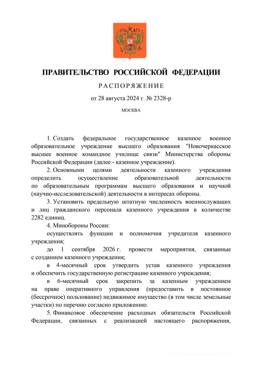 В Ростовской области будет заново открыто Новочеркасское высшее военное командное училище связи. Соответсвующее распоряжение утвердило (http://government.ru/docs/52509/) Правительство РФ.