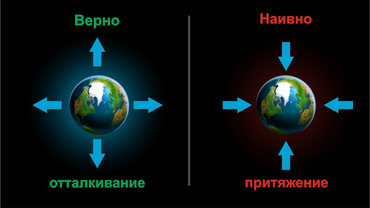 Добрый день! В 21 веке говорить, что Земля притягивает это тоже самое, что утверждать, что Земля плоская! Постараюсь кратко всё объяснить, остальное Вы поймёте сами, благодаря полученному Вами образованию и уровню Вашей эрудиции. Поехали! Рассмотрим бытующее наивное представление якобы Земля притягивает к себе вещественную материю. Люди в будущем будут смеяться над этими представлениями, так же как мы сейчас улыбаемся над предположением, что Земля плоская и держится на 3х слонах. А наивно это вот почему. Если бы это было так, то это означало бы, что вся вещественная материя притягивается друг к другу. И прислонив руку к Земле Вы бы никогда не смогли бы её оторвать, так как Ваши атомы и молекулы слились бы с Землёй. Но это не важно, так как в данную же секунду мелкие планеты обрушились бы на крупные, и вся Вселенная бы устремилась бы в единый центр у нас же всё друг к другу притягивается. Вот такой сценарий будет по версии притяжения! Ещё пример для закрепления. Мысленно предс