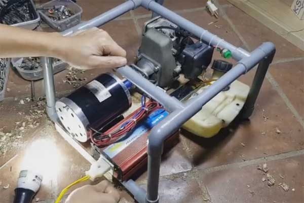 На основе этих деталей выполняется сборка защитного каркаса генератора, а также делаются опорные ножки. Подробности сборки наглядно демонстрирует видеоролик, созданный автором идеи сборки домашнего генератора на базе мотора газонокосилки.