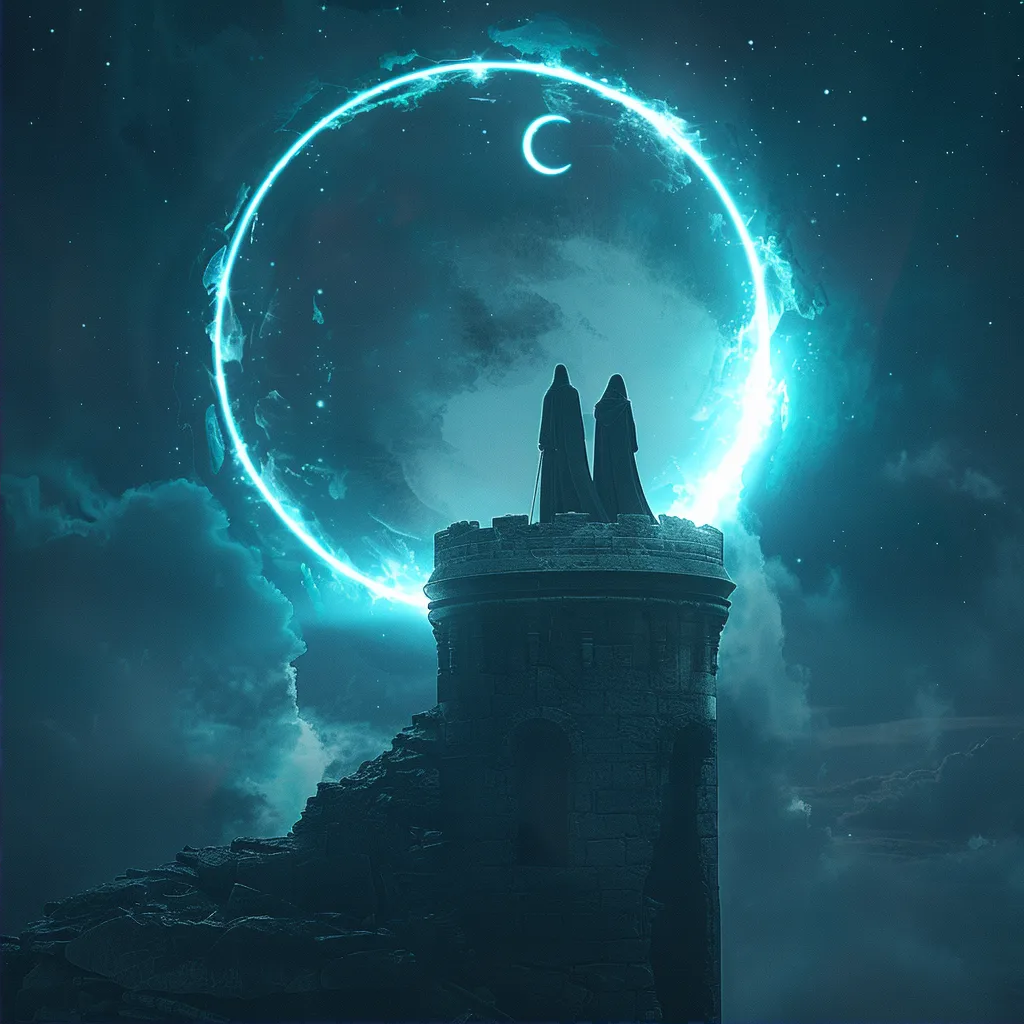 Они вновь замерли, каждый погружённый в свои мысли и ожидания. Вечерний воздух, наполненный звуками далёкого шёпота ветра, казался мирным, но в его тишине ощущалось готовность к будущим испытаниям. Они знали, что впереди их ждут сложности и преграды, но теперь, стоя плечом к плечу на вершине башни, они были уверены в своей силе и решимости справиться с любыми вызовами.