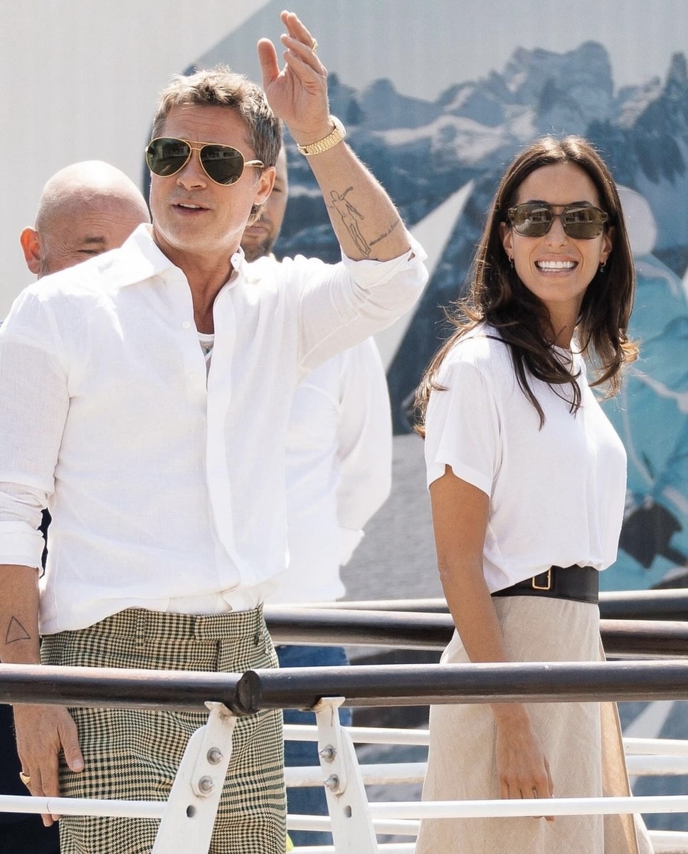 Вчера репортеры запечатлели приплывающего на катере Бреда Питта с подругой Инес де Рамон к острову Лидо для представления своего фильма «Одинокие волки». В этом году организаторам фестиваля ух как нелегко было продумать план просмотра фильмов, чтобы на одной ковровой площадке в одно и то же время не встретились Джоли с Питтом, да ещё и с его подругой. О которой мы знаем что? Не очень много, кроме того, что ей 31 год и она дизайнер украшений, а ещё то, что встречаются они с 2022 года. Хотя может быть вы что-то знаете ещё? Пишите в комментариях) По слухам, перед приездом в Венецию влюбленные побывали в доме у Джорджа Клуни, и одновременно напарника по фильму, на острове Комо в Италии, после чего отправились в поместье Шато Мираваль во Франции, за которое очень долго судились с Анджелиной Джоли, но в конечном итоге суд был выигран и теперь Питт может приезжать туда когда хочет. Ладно, поприветствовали Бреда Питта, а теперь посмотрим кто в этот день блистал на ковровой дорожке: Джуд