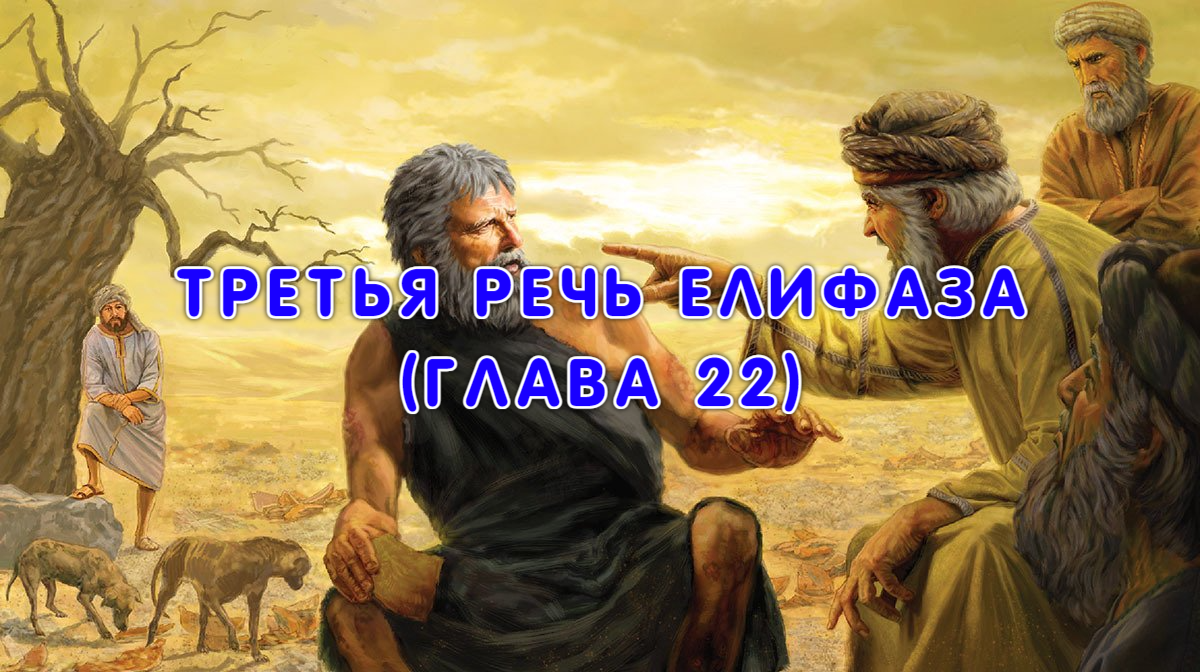 В главе 22 Елифаз попадает в ловушку, характерную для тех, кто, не умея ответить на правдивые доказательства другого человека, предпочитают перейти к личным нападкам. В стихах 6–9 он предъявил Иову личные, конкретные и совершенно безосновательные обвинения. Отрывок с 21-го по 30-й стих является «прекрасной евангельской проповедью, содержащей несколько отточенных фраз... Это ещё один пример хорошего лекарства для не того пациента» (Олден).