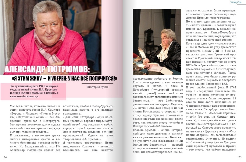 Мы все в школе, конечно, читали и учили наизусть басни И. А. Крылова «Ворона и Лисица», «Слон и Моська», «Мартышка и очки»… Иван Андреевич проживал в Петербурге, был принят во многих домах и даже имел собственное кресло там, куда был приглашен отобедать... К сожалению, в настоящее время многие интересные факты о великом баснописце преданы забвению… Но Заслуженный артист РФ Александр Тютрюмов делает все возможное, чтобы в Петербурге сохранилась память о его великом гражданине… Я увлекаюсь творчеством Ивана Андреевича Крылова - великого баснописца, как мне кажется, незаслуженно забытого в России. Его произведения стали меньш