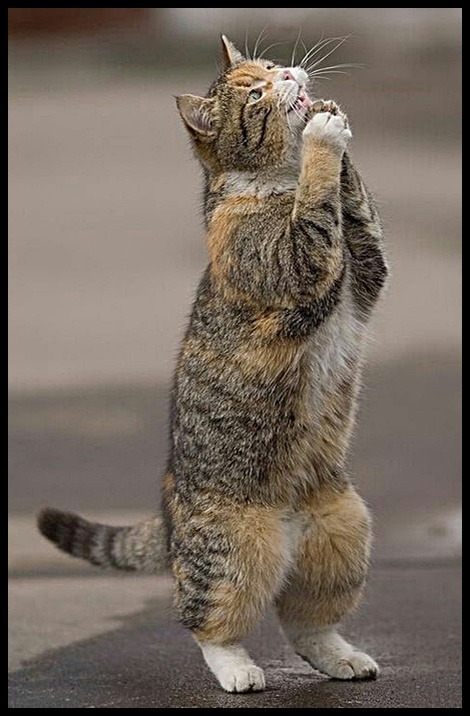Вот порой удивляемся мы кошкам Куклачева. и прыгают, и бегают по приказу. А понаблюдайте-ка вы дома за своими питомцами, вот уверена удивят они вас. И без всякого приказа так подпрыгнут, встанут на задние лапы или изогнутся, что удивляет, где и научились. Или это у них в крови и они тщательно это скрывают?