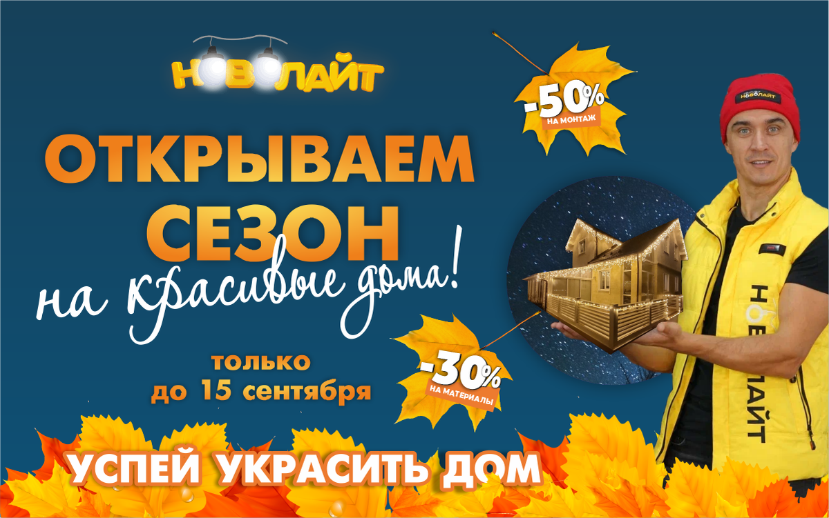 🔥В сентябре в Новолайт отличное предложение по новогоднему освещению вашего дома - 50% скидка на монтаж и 30% скидка на материал. Успевайте заказать новогоднее освещение именно сейчас, потому что совсем скоро цены будут подниматься у всех поставщиков новогодней продукции. У нас скидки будут уменьшаться, так как близиться сезон. Расчет новогодней иллюминации мы сделаем за 1 час по фотографии вашего дома. Монтаж можно сделать или сейчас, или ближе к новому году, как вам будет удобно. Успевайте сделать заказ в сентябре по самой лучшей цене! 📢Акция действует только до 15 сентября! 💥Обращайтесь в Новолайт за Новогодней иллюминацией своего дома прямо сейчас! ✨Мы точно создадим вам сказку и яркие эмоции, в любое время года. ⚡Ну и конечно, чем раньше вы закажете, тем дешевле и быстрее мы всё сделаем! 🔥Получите расчет по фото дома уже сейчас за 1 час. 📬Напишите нам, и мы мгновенно ответим и все расскажем! WhatsApp: +79325362636