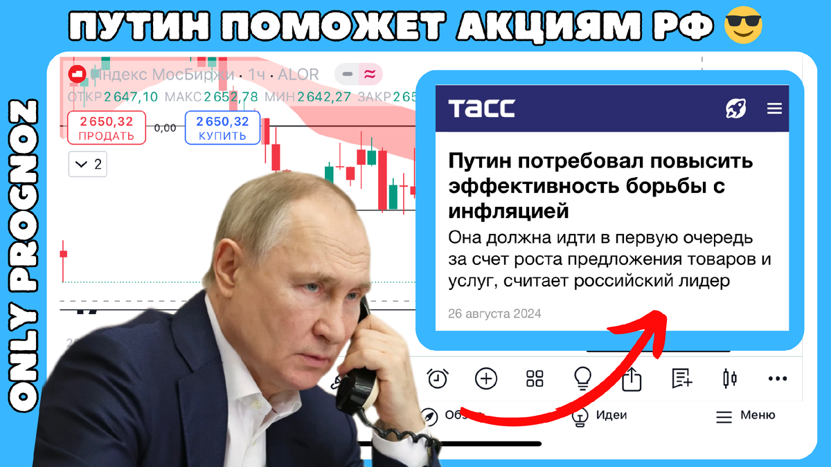 Путин о ЦБ Президент призвал ЦБ лучше бороться с инфляцией. Ставка растет, но цены тоже 🚀 Что это значит ЦБ вряд ли поднимет ставку выше. 20-22% годовых убьют бизнес. Кредиты станут слишком дорогими Какая ставка может быть? 🤔 Скорее всего, останется 18% годовых. Деньги текут в рынок, инфляция высокая. Но ЦБ будет искать другие метод Слова Путина Президент сказал: нужно больше товаров и услуг, чтобы сбить цены (что конечно позитив для акций рф) Что будет с рынком Ставка 18% - хорошо для рынка, сбивать вряд ли будут, а повышать - очень опасно. Поэтому если ставка останется прежней, это конечно небольшой позитив для рынка. Если не будет негативных новостей, я жду конечно отскок рынка 📈