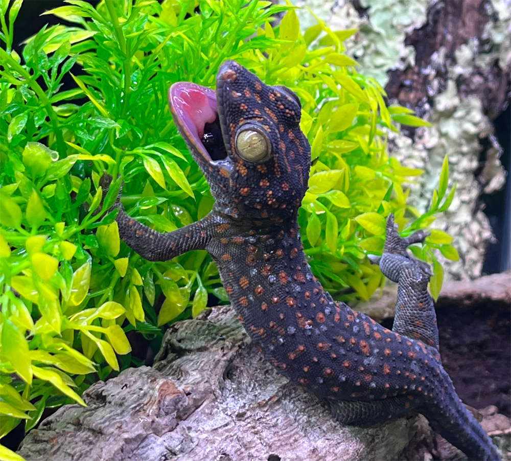 Гекконы токи являются древесными ящерицами, занимают собой дупла деревьев, пространства между корой, лиственные ветви, нередко встречаются в расщелинах скал, также приспосабливаются к людским жилищам. Само название "токи" произошло от звука, который издают эти ящерицы. При попытке напугать потенциального хищника, эти гекконы издают резкий звук, похожий на "то-ки". Всего существует два подвида гекконов токи - Gekko gecko gecko, и Gekko gecko azhari. Первый подвид обитает повсеместно по всему своему ареалу, а вот azhari является эндемиком, их можно встретить только в Бангладеш. Токи достаточно крупные гекконы - вырастают до 30 сантиметров (вместе с хвостом) и имеют необычный окрас. Как правило, это сине-серая ящерица с красными или оранжевыми пятнами и крапинками по всему телу, однако, имеются и другие цветовые вариации, некоторые из них можно встретить в природе, например, patternless – ящерица, практически полностью лишённая в окрасе рисунка, в случае с токи - отсутствуют рыжие и красн