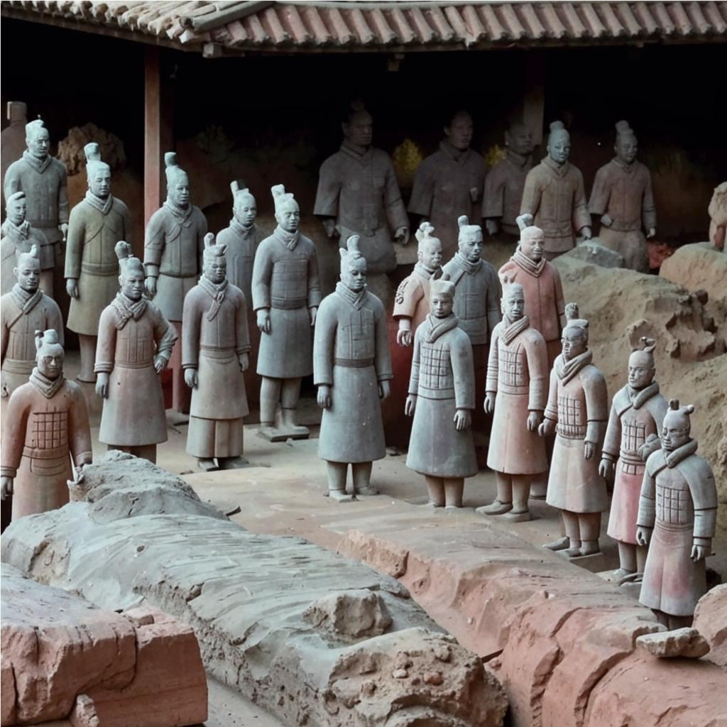 Слой за слоем археологи аккуратно исследовали территорию, где буквально на каждом шагу им попадались древние артефакты. Среди них особенно выделялись скульптуры воинов, сделанных из обожженной глины с высоким содержанием оксида железа. Оказалось, что вся гора Лишань – создание рук человеческих.