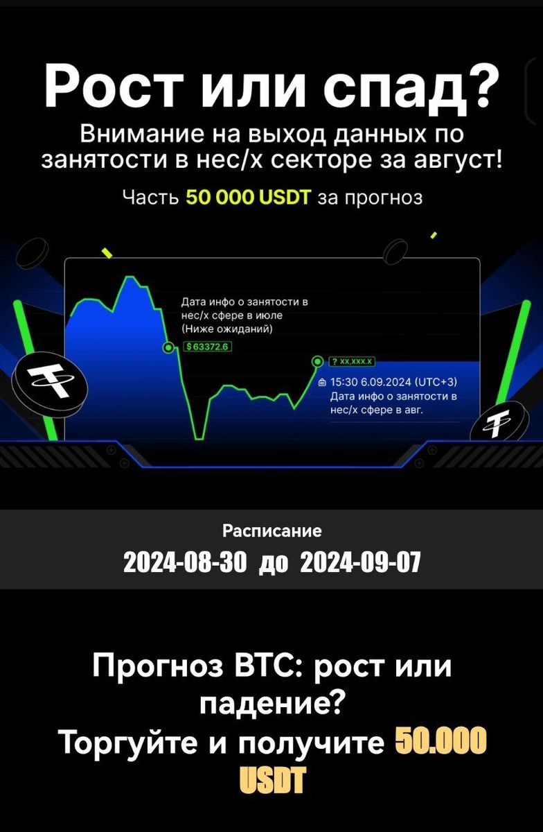 🔔 Участники с правильными прогнозами разделят призовой фонд в 50.000 USDT