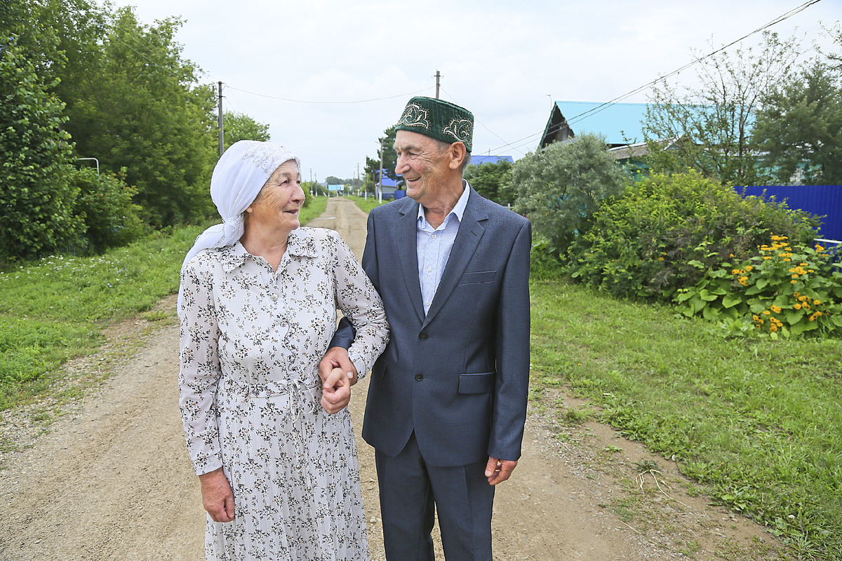 – В чём секрет счастливой семейной жизни? – спрашиваю я Фераю и Рафаэля Гиззатуллиных, которые женаты уже 49 лет. Рафаэль Равилович смеётся и вспоминает анекдот: «Муж говорит жене: «Скоро золотую свадьбу отметим». – «Так мы же ещё только пять лет женаты...» – «А с тобой год за десять идёт». Потом добавляет: – А у нас пятьдесят лет как пять прошли... Даже не заметили! У семьи Гиззатуллиных из агрызского села Старое Сляково золотая свадьба будет в следующем году. А в этом им вручили медаль «За любовь и верность». Объединяет их верность не только друг другу, но и профессии: оба больше тридцати лет проработали учителями в школе родного села. Рафаэль Равилович преподавал биологию и географию, Ферая Изаховна учила детей химии и была завучем. ПО РОДИТЕЛЬСКОМУ ЗАВЕТУ Семейные ценности для каждого из них стояли во главе угла изначально. На вопрос, почему стали учителями, муж признаётся: он следовал совету мамы, которая сама была педагогом. Жена тоже вспоминает, что отец мечтал видеть