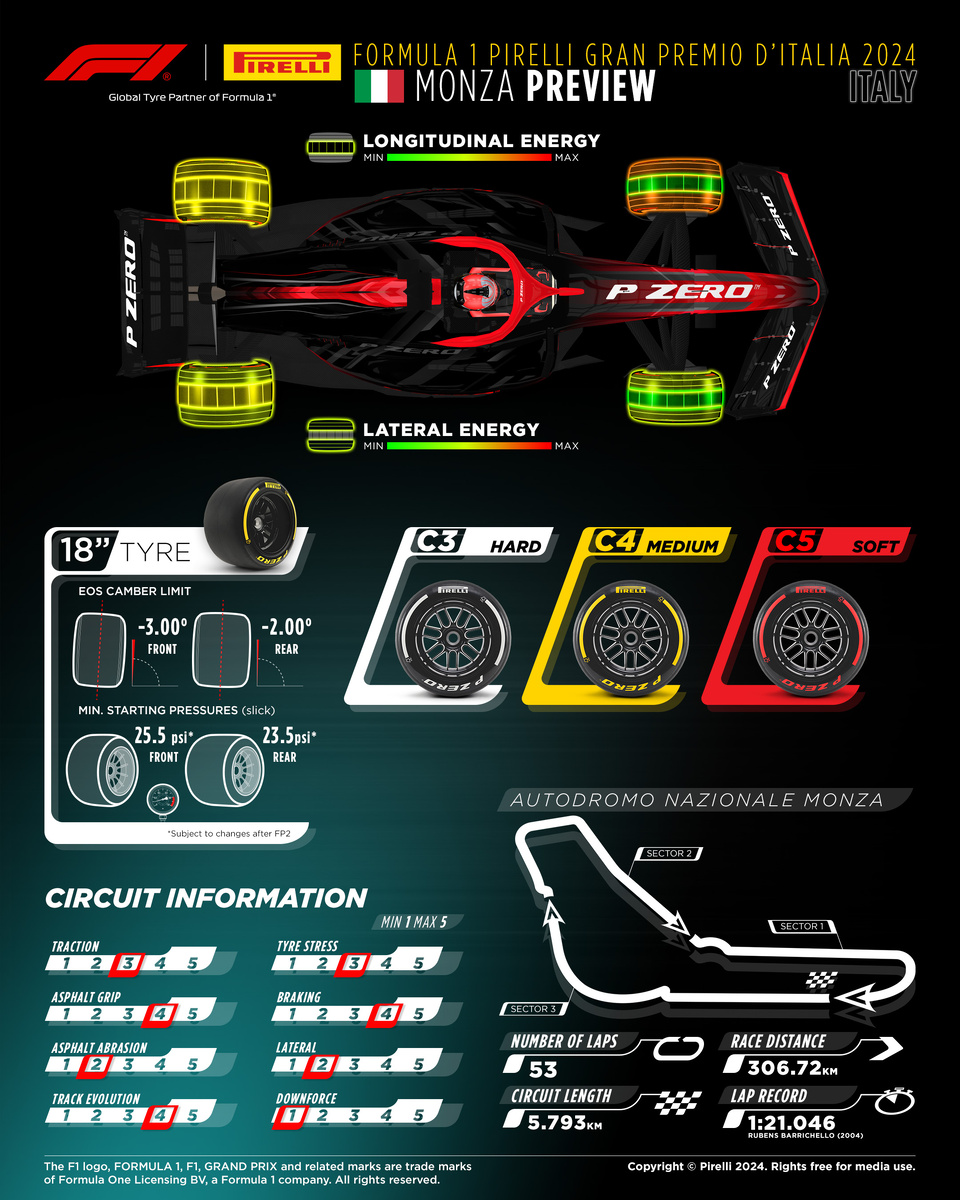 Также в Монце один из ключевых аспектов – состояние мотора, потому множество пилотов подобрали самые неизношенные силовые установки из пула. «Мерседес», «Макларен», «Астон Мартин», «Заубер» и «Хаас» взяли по новой обеими машинами, также к ним присоединились и Сайнс с Колапинто. Ферстаппену и Пересу перед стартом сменили тормоза. Судя по всему, специально под особую смелую стратегию со стартом на самом жестком составе шин – больше из фаворитов никто на такое не решился.