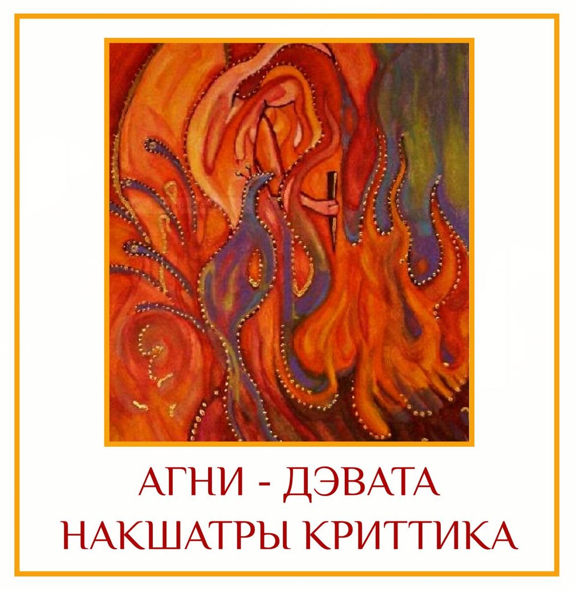 Всякий раз, когда мы совершаем какие-либо огненные ритуалы дома, или в храмах, или во время каких-либо благоприятных случаев, таких как свадьба, пуджа и т. д., Агни дэв становится нашим посланником. Агни — священный огонь, стремящийся к чистоте посредством жертвоприношений. У Агни два красных лица, три ноги, чёрные глаза и волосы и семь рук. Люди Криттики гордятся своими талантами, которые они унаследовали или развили с течением времени. 7 пламён Агни представляют 7 уровней сознания (положение экзальтирующей Луны). Экзальтация Луны связана с ясностью ума без каких-либо сбоев. Люди Критики очень ясны и прямолинейны в общении. Господь Картикея чётко обозначил свою миссию со дня своего рождения, поскольку он был рождён, чтобы победить демона Тараку. Агни всегда движется вверх, но может быть очень изменчивым и нестабильным, чтобы его контролировать. Это означает, что Огонь (творчество и осознанность), может поднять вас высоко, но вам нужно контролировать гордыню и огненный темперамент, и в