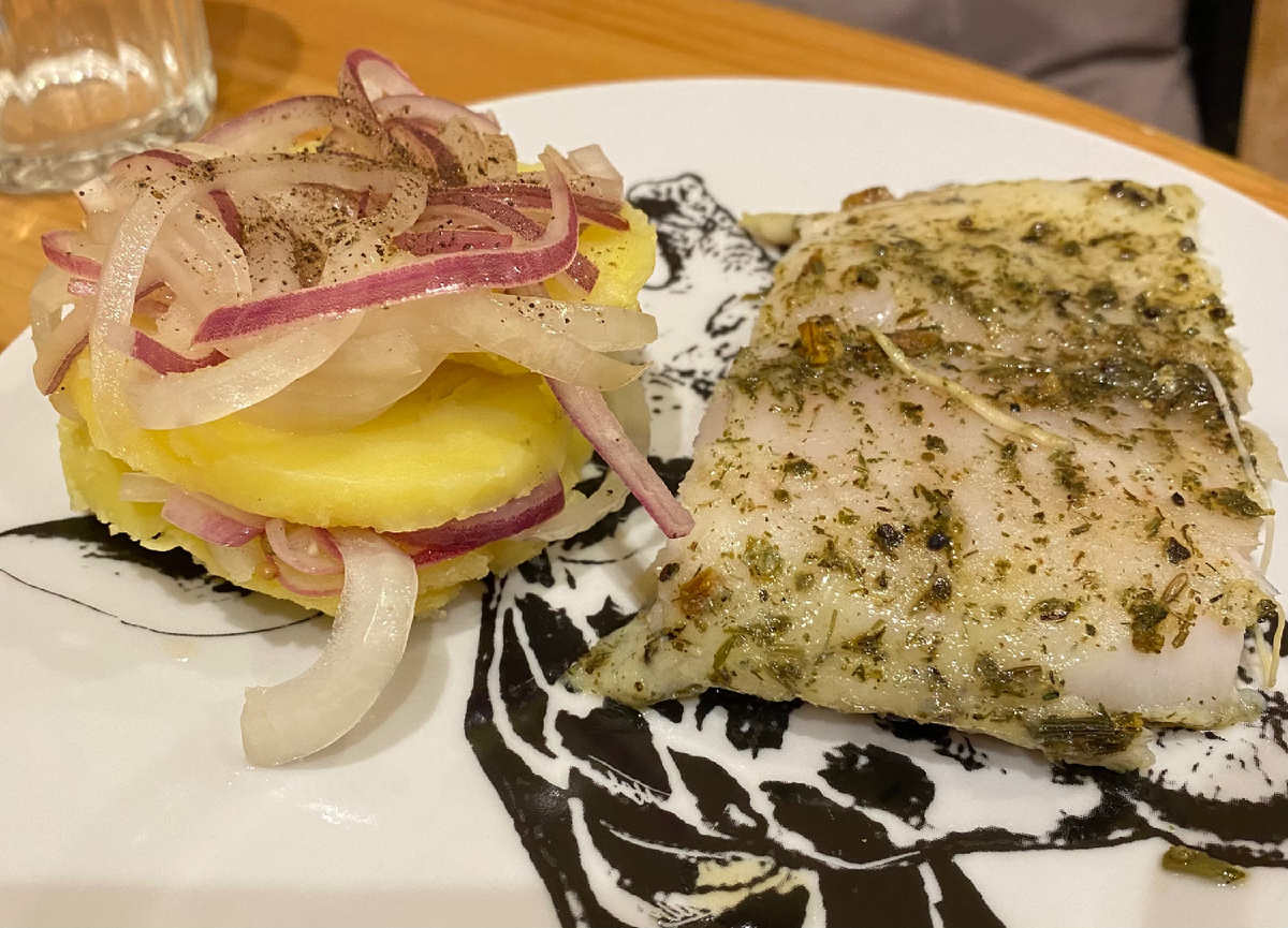 В рыбе много легкоусвояемого белка, поэтому она идеальна для сытного и полезного ужина. А картофельный салат с маринованным луком добавит нотку пикантности😋 Для салата нам потребуется: Для маринада, в котором будет готовиться наш лук: Нарезаем лук тонкими перьями. Смешиваем до однородной массы все ингредиенты для маринада. Советую делать это в контейнере с плотной закрывающейся крышкой, чтобы хранить оставшийся маринованный лук в холодильнике. Кладем в маринад лук и оставляем на 30 минут. В это время отвариваем картофель в кожуре. Это займет как раз полчаса. Сильно разваренные клубни для салата не подойдут - он не будет держать форму. Готовый картофель очищаем от кожуры с помощью неострого ножа и ложки. Режем круглыми ломтиками. На тарелку в сервировочное кольцо укладываем по очереди картошку и лук (без маринада), до края кольца. Посыпаем солью и перцем и осторожно убираем кольцо. Рецепт рыбы в фольге Филе промываем и промакиваем бумажным полотенцем. Натираем рыбу приправами и мас