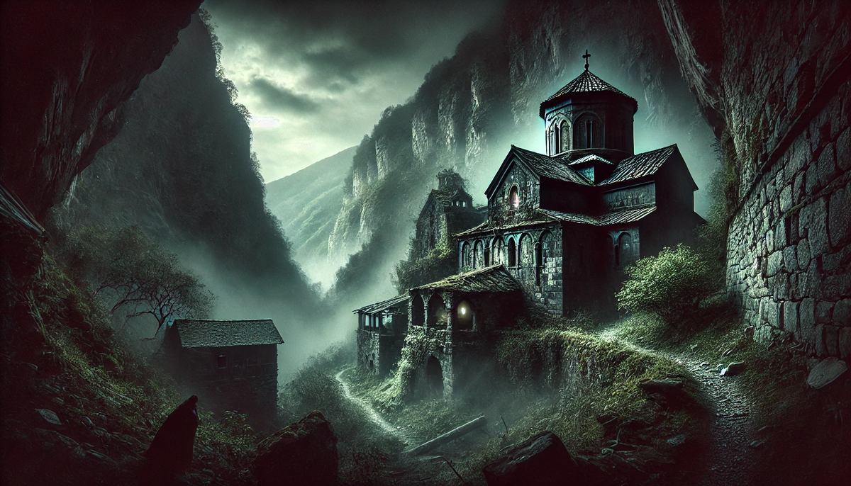 Высоко в горах Кавказа, на одном из труднодоступных плато, находится старинный монастырь, который уже многие века является объектом суеверий и таинственных рассказов. Монастырь этот был основан в далёком XII веке, когда отшельники и монахи искали уединения в диких и непроходимых местах. Со временем монастырь стал духовным центром для всей округи, но однажды здесь произошла трагедия, которая навсегда изменила его судьбу. В конце XVIII века в монастыре жил монах по имени Феодор. Он был известен своим благочестием и глубокой верой, но также и тем, что искал истину в древних текстах и тайных писаниях. Его коллеги-монахи считали его несколько странным, но уважали за мудрость и самоотверженность. Однажды Феодор отправился в горы, сказав братьям, что ищет древнюю пещеру, упоминаемую в старинных свитках, где, как он верил, скрыта великая тайна. Прошло несколько дней, но Феодор не вернулся. Монахи забеспокоились и отправили поисковую группу, но следов его так и не нашли. Казалось, что он просто