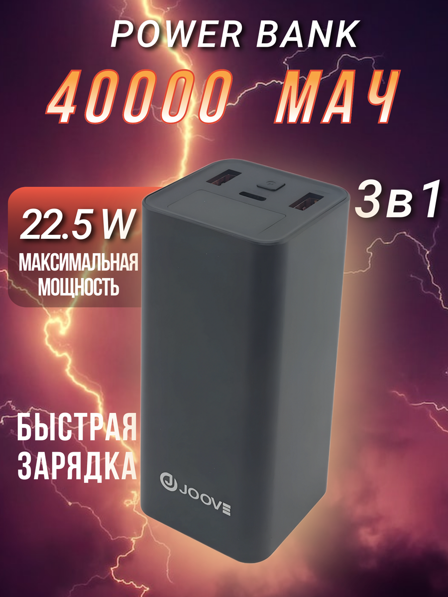 Повербанк Joove JPB65 65W Black - это внешний аккумулятор для телефона, который станет незаменимым помощником в путешествиях, на работе или в повседневной жизни.