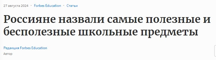 В преддверии 1 сентября - Дня знаний, в России провели большой опрос, связанный с предметами, изучаемыми в школе: какие предметы считают самыми полезными, самыми бесполезными, какие профессии видят наиболее перспективными и т.д. Опрос проводит ВЦИОМ - государственный центр исследований, который всегда показывает почти абсолютную поддержку президента и политических решений. Но результаты все равно получились довольно интересными. Респондентам предлагали назвать 5 самых полезных и самых бесполезных школьных дисциплин. Особенно интересно видеть, как менялись взгляды россиян в динамике: для сравнения приводятся данные аналогичных опросов за 2009 и 2019 годы, а в плане престижа профессий данные сравнили с прошлым годом. Во-первых, что сразу бросается в глаза, полезность абсолютно всех школьных предметов в глазах опрошенных заметно упала. Вот 5 самых полезных: Безусловными лидерами во все времена остаются математика и русский язык. Поддерживаю. Однако еще 5 лет назад за пользу математики в
