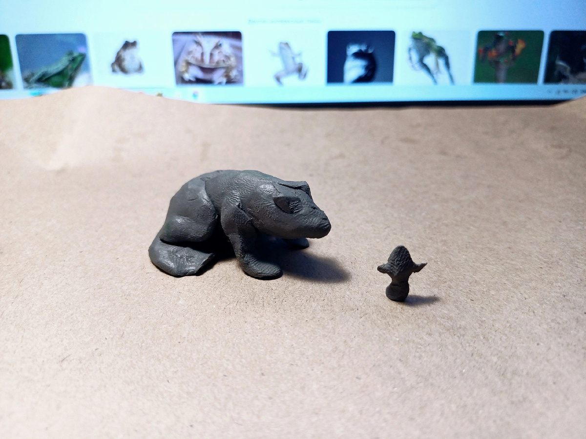 "Я не умею лепить и рисовать" - так не бывает. Обычно, тот кто не умеет рисовать, лепить уж точно умеет, только не подозревает об этом. В этом плане Природа справедлива. Другое дело, что не у всех богатая фантазия, но опять же, фантазия дело наживное. Через лепку. И вот, вы купили пластилин, и даже развернули пачку. И даже есть некая идейка что слепить. Начинаем мять пальцами пластилин ... и никакого фокуса не происходит. Более того, пластилин внушает отвращение - липкая масса, чуть двинул пальцами и форма поменялась. Прикол здесь в нетерпении. Конечно, налетевший на груду металлолома шквал не соберёт Боинг. Но в голове то есть конкретная фигура. Продолжаем лепить и поначалу подчиняемся слепой вере, что в итоге что-то получится. Лепим, мнем, лепим. Осмысленная фигура в пластилине появляется неожиданно, вдруг. Надо только расслабиться и доверить дело рукам. Причём, фигура может появиться не полностью, а частью. Теперь внимание! Появиться может совсем другая фигура, допустим не ля