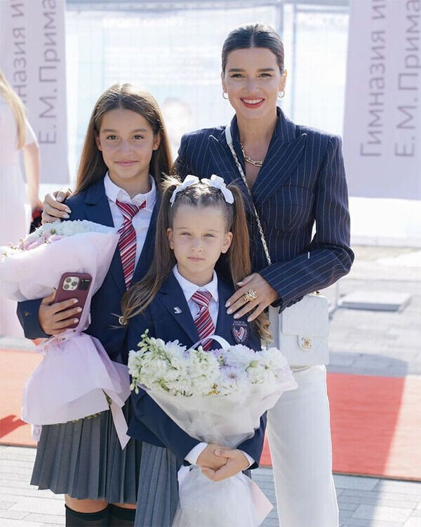 День знаний — важный праздник не только для детишек, но и для их мамочек, особенно звездных. Выбрать стильный деловой лук, сделать фото у школы на память и поделиться в социальных сетях — неотъемлемая часть торжества. Мы полистали социальные сети наших селебрити и выбрали самые удачные образы на 1 Сентября за последние годы! Ксения Бородина выбрала суперстильный аутфит с белыми прямыми брюками и укороченным синим пиджаком в полоску — в тон школьной формы дочек. Дополнили сочетание небольшая стеганая сумка и золотые украшения: серьги-кольца, массивное кольцо и цепь. Образ однозначно на заметку! Получилось очень элегантное, торжественное и в меру деловое сочетание. Оксана Самойлова сделала ставку на праздничность, нежели на официальный дресс-код, и нарядилась в ярко-синее мини-платье с белым воротничком и плиссированной юбкой. Завершили образ трендовые серебристые балетки с квадратным мысом. У Оксаны в семье 3 школьника, поэтому День знаний отмечается как полноценный праздник, и это заме