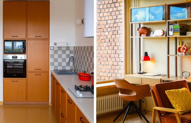 Читайте, вдохновляйтесь и выбирайте, что подходит именно вам Дизайнер Павел Фотеев обустроил яркую стильную двушку 62 кв. м с элементами ретро и спроектировал функциональные системы хранения. Делимся полезными идеями из проекта, которые точно достойны вашего внимания. Павел постарался максимально задействовать все имеющееся пространство кухни. В нишу между двумя коробами встроили шкафы-пеналы для техники и хранения. Они экономят пространство в помещении, обеспечивают удобное расположение техники и делают обстановку более опрятной. Стеллаж около окна в гостиной латвийского производства 71-го года. С его помощью красиво организовали хранение и обустроили рабочую зону. Столешница с выдвижными ящиками удобна в использовании и отлично подходит для работы с ноутбуком. Оригинальным предметом меблировки стала бельевица из старого спального гарнитура. В этой гостиной она будет использоваться вместо ТВ-тумбы и для самого разного хранения. В прихожей застройщиком были предусмотрены ниши. В них сд