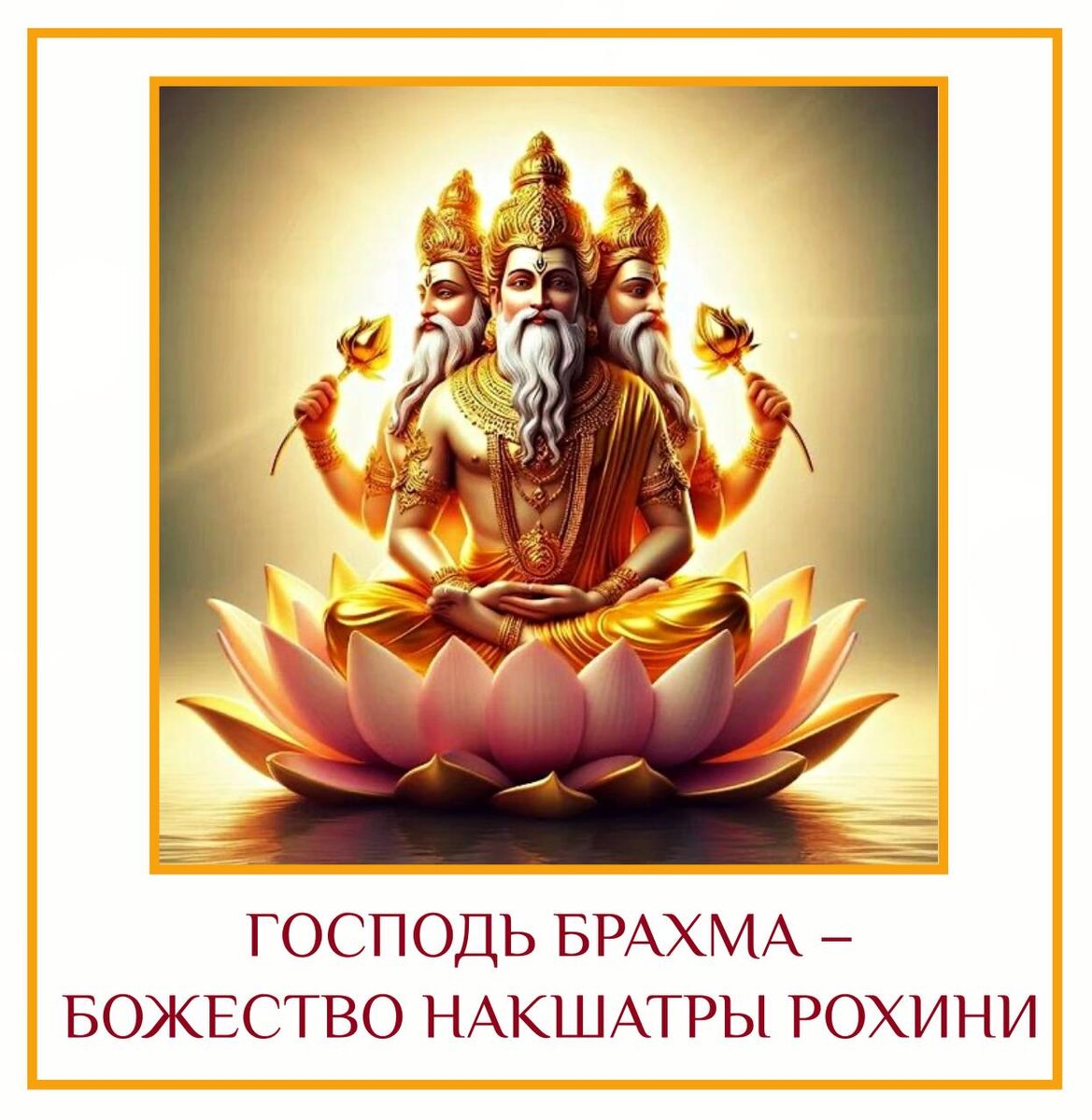 Божество накшатры Рохини – Господь Брахма. Согласно ведическим писаниям, мы все — дети Брахмы, поскольку именно Брахма создал эту прекрасную Вселенную. Люди Рохини хороши не только в создании чего-то нового, но и в развитии своей области/предмета. Так, например, они могут преуспевать в финансовом росте. Они могут быть хорошими продавцами благодаря мягкой и гармоничной речи/интонации. Людей Рохини привлекают красота и роскошь, и они сами являются центром притяжения на любом собрании. Брахма влюбился в свое собственное творение (дочь) Рохини. В современную эпоху мы можем интерпретировать, что люди Рохини тайно следят/ходят по пятам за своими детьми. Например, им надо знать, с кем они встречаются? Что они делают, когда находятся одни? Каковы их желания? И т. д. Рохини почувствовала стыд из-за поведения своего отца и убежала, приняв облик оленя (Мригаширы). Господь Шива отрубил пятую голову Брахмы из-за нечестивого поведения и проклял его. Вывод такой - людям Рохини следует внимательно отн