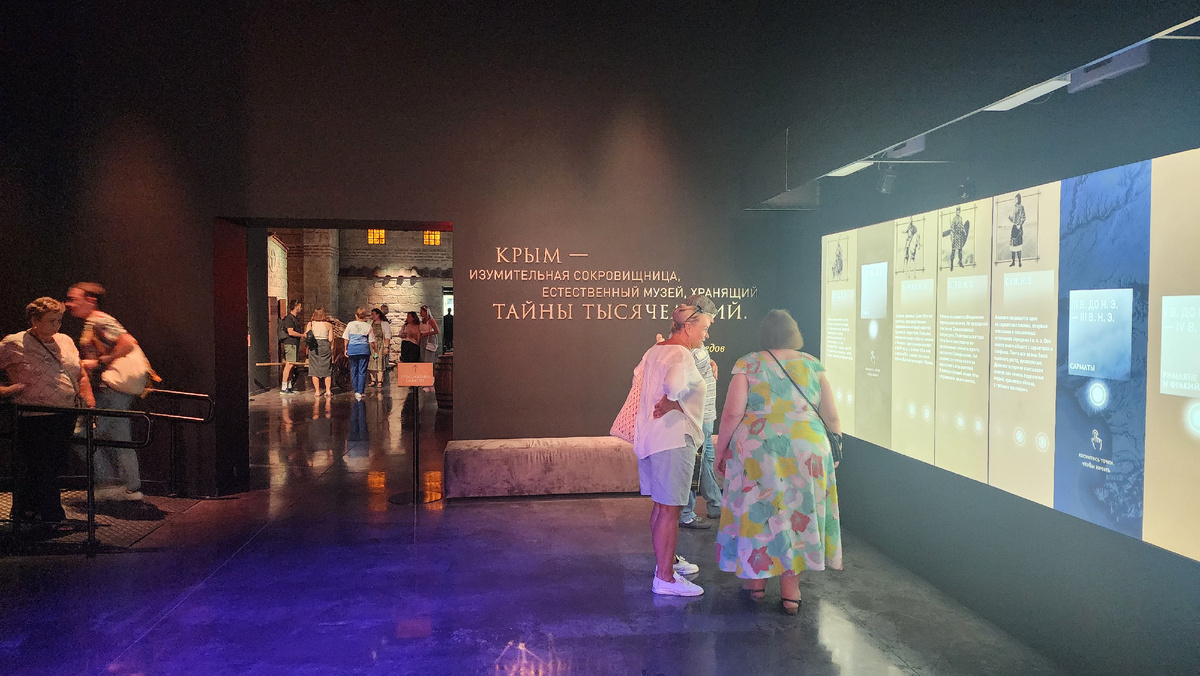 В просторном холле невероятно красивого Музея Крыма и Новороссии, который, как жемчужина, украшает Новый Херсонес, стояла очередь за билетами. Мой билет был куплен онлайн, поэтому я сразу завернула ко входу в залы музея, где и начиналась экспозиция.