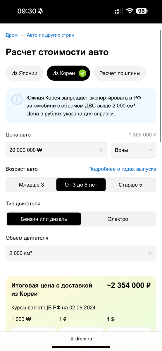 Как приблизительно рассчитать стоимость авто с Кореи (encar.com)?