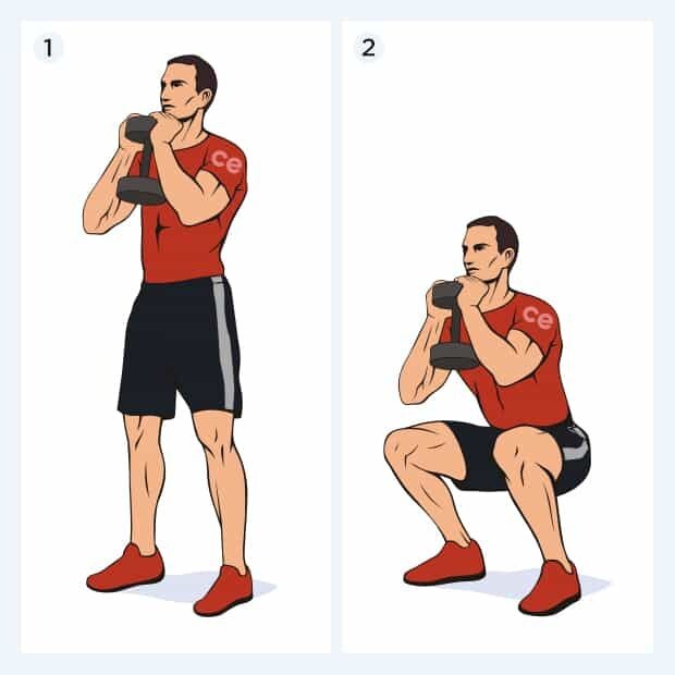 Приседания с гирей, или как их еще называют «гоблет», или кубковые приседания – это великолепное упражнение для развития мускулатуры бедер и ягодиц. Такой вид приседаний технически проще, чем приседы со штангой и вполне подходит для тренировок начинающих спортсменов. Для тех, кто увлекается гиревым фитнесом, данное упражнение является, можно сказать, элементом обязательной программы. Как и другие виды приседаний, приседы с гирей развивают мышцы нижней части тела. В первую очередь – это квадрицепсы (передняя часть бедра). Также работают и большие ягодичные мышцы. Дополнительную нагрузку испытывает группа мышц задней поверхности бедра, икроножные мышцы, поясница. За счет того, что вы держите в руках гирю, статическое напряжение испытывают бицепсы и плечи. Техника выполнения гоблет приседания: Выполняйте данное упражнение по 10–15 раз в 3–4 подхода, если иного не указано в вашей тренировочной программе. Вес гири берите максимальный, при котором вы сможете удержать равновесие и соблю