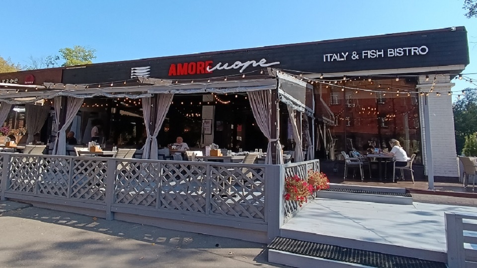 Памятную дату в пятницу вечером решили отметить в итальянском ресторане на Кржижановского, 22. Заранее заказали столик. Расположение вполне удобное - транспорт далеко (не летит пыль и нет шума), от метро минут 7 ходьбы, да парковка для личного транспорта есть. Хотя остановка трамвая совсем рядом. Удивительно, что на заказанное имя в этот вечер оказалось три столика , но для нас - в зале, что отличало заказы. Хотя и на улице тоже было бы неплохо - у каждого столика есть пледы, если вдруг станет прохладно. В зале очень удобно нас расположили - у окошка. Ненавязчиво работал кондиционер - даже не чувствовалось холодного дуновения, но очень комфортно. Когда мы пришли, в Amore Море нас встретила приветливая атмосфера, на входе стояли несколько официантов, которые заботливо проводили на наши места, сразу же дали меню и буквально через несколько минут мы уже заказали блюда. Приятно отметить, что официант прекрасно разбирался во вкусах не только винной карты, но и во всех тонкостях вкуса блюд.