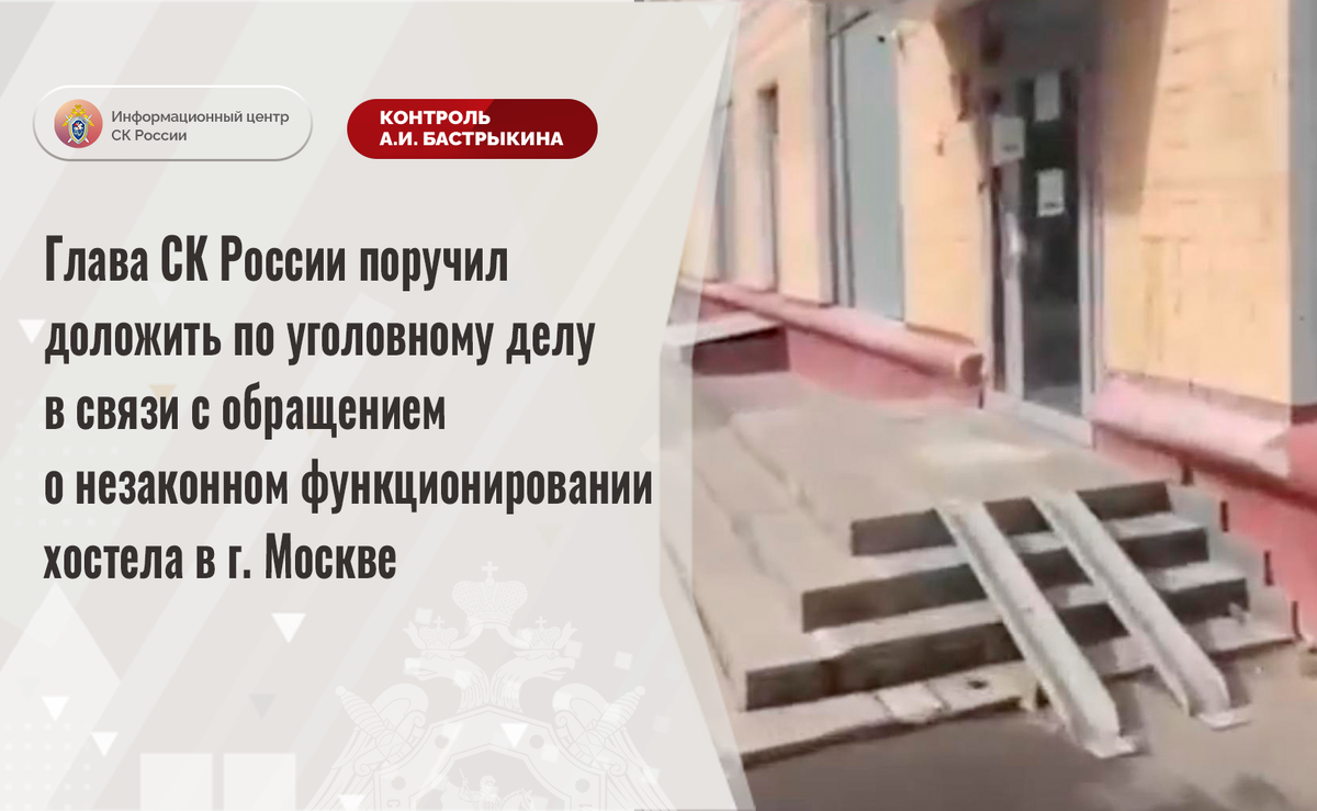 Глава СК России поручил доложить по уголовному делу в связи с обращением о незаконном функционировании хостела в г. Москве