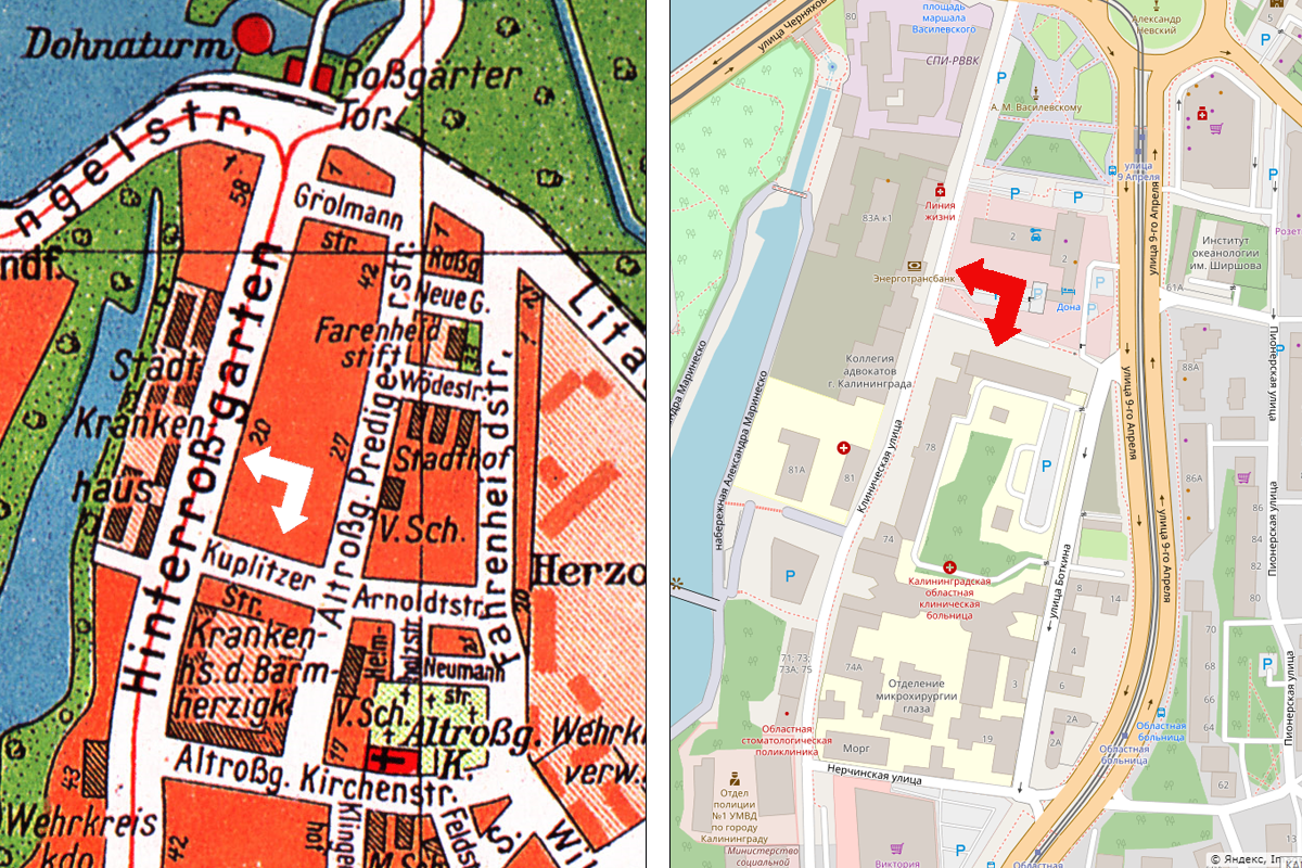 Эти строения сразу бросаются в глаза и сегодня, так как Вторая мировая война их пощадила. Вот только не все они сохранили профиль. Например, в доме №83 по улице Клинической в 1950-х годах разместился завод торгового машиностроение, а сегодня помещения занимает «Энерготрансбанк». А в доме №81 сразу после войны открылся родильный дом №1. На фасаде здания можно увидеть мемориальную доску его создателю – военному врачу Виктору Лапидусу – основателю акушерско – гинекологической службы Калининградской области и почётному гражданину Калининграда.