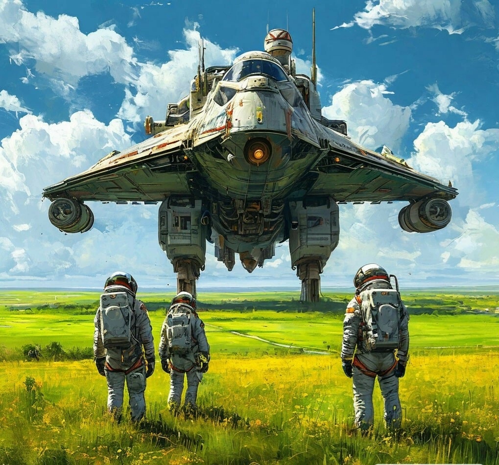 Космолет приземлился посреди большого поля. На поле росла высокая, зеленая трава, в которой четыре члена экипажа, сошедшие с корабля, тонули по пояс. На них были облегченные версии скафандров, практически не ограничивающие движения. Такие скафандры предназначались специально для высадки в благоприятных условиях с минимальным вредным воздействием на человеческий организм. По правде говоря, в нынешнем месте посадки можно было обойтись без защиты, но по инструкции это было запрещено без подробнейшего анализа атмосферы, производимого непосредственно на поверхности. Разумеется, капитан Харлачев не мог нарушить инструкцию. Он был одним из четверки, стоявшей среди прекрасного пейзажа и молча, с восхищением оглядывал окружающую его природную картину.