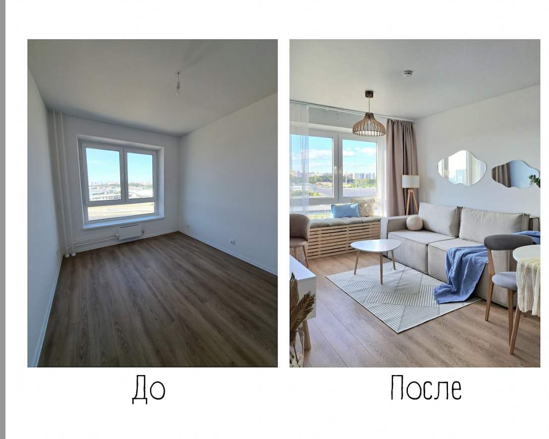Хоумстейджинг это - создание уютных сцен которые привлекут покупателя и создадут эмоциональную связь с объектом . Поэтому завершающим этапом стала работа по хоумстейджингу. После тщательного клининга, мы добавили текстиль, освещение и мелкий декор, чтобы создать уют и завершённый образ. Важную роль сыграли детали: светлые шторы, подушки с геометрическими узорами, ковры с мягкими текстурами и минималистичные картины, зеркала облачками, которые гармонично дополнили интерьер. Всё это придало квартире уют и создало атмосферу, в которой хочется жить.
